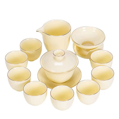 羊脂玉寶石黃茶具套裝